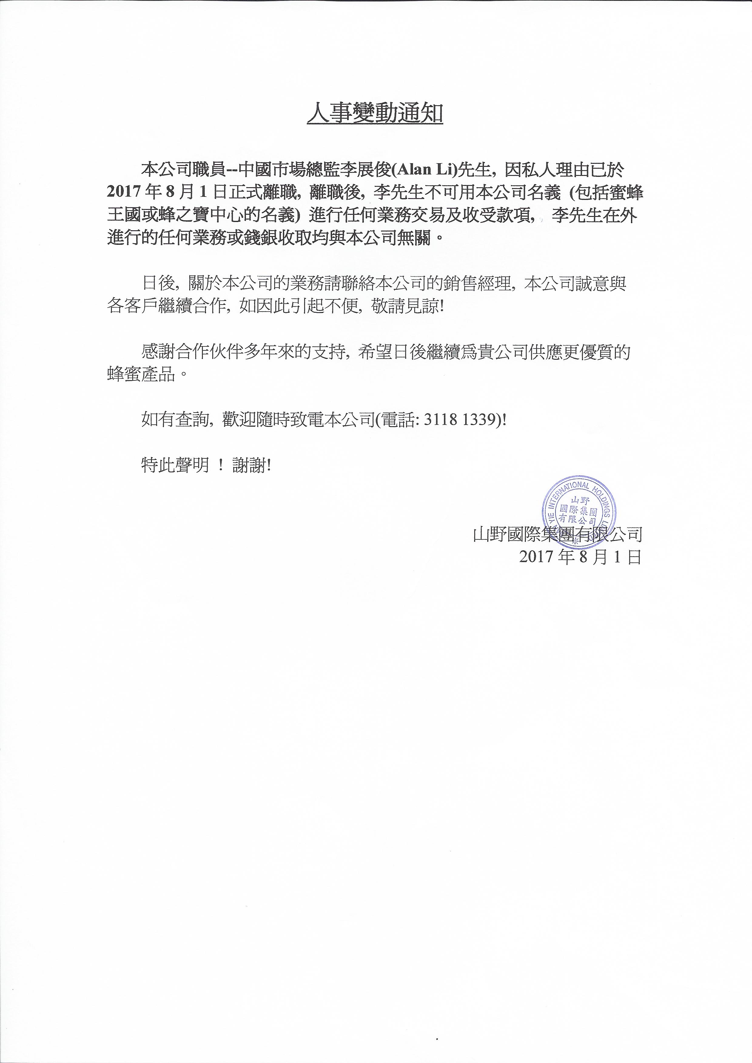 人事變動通知